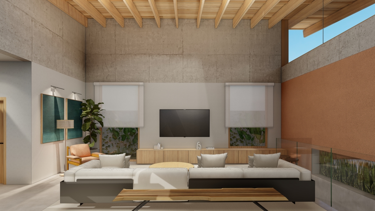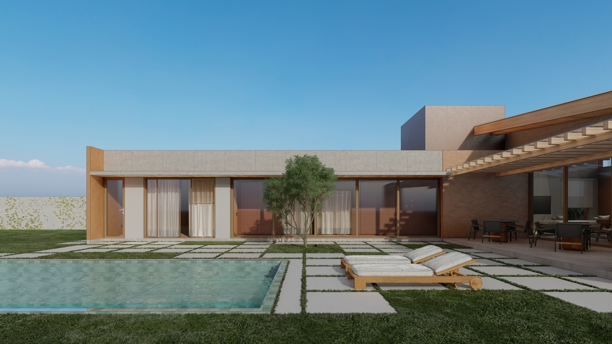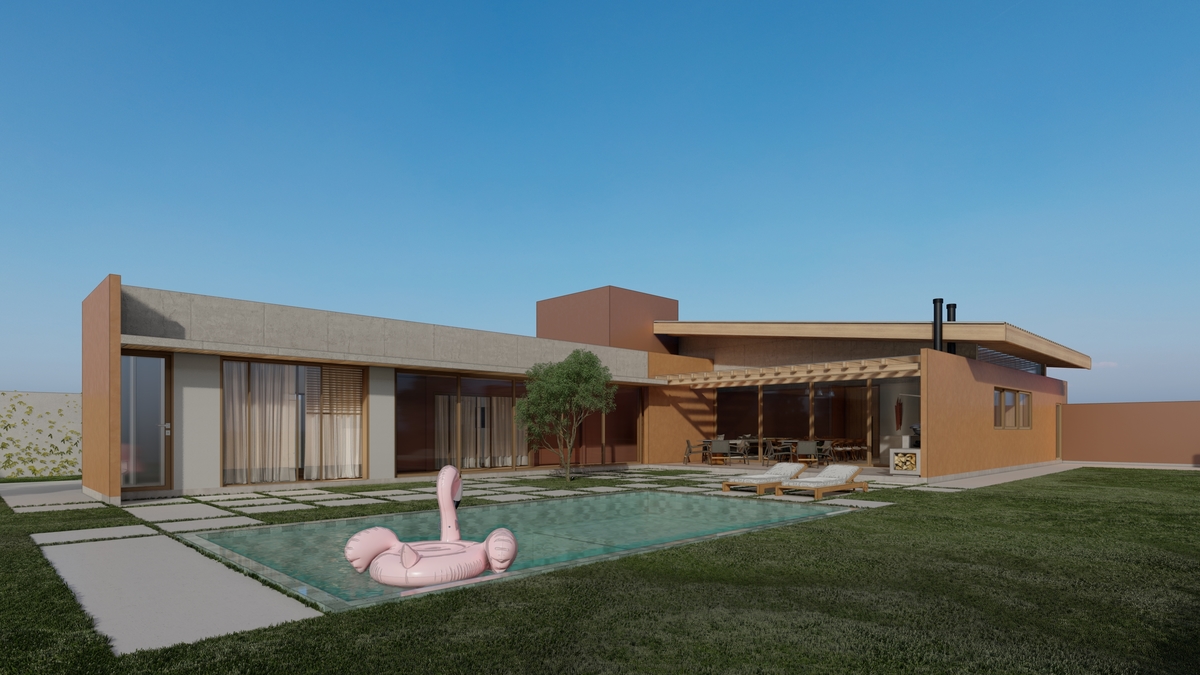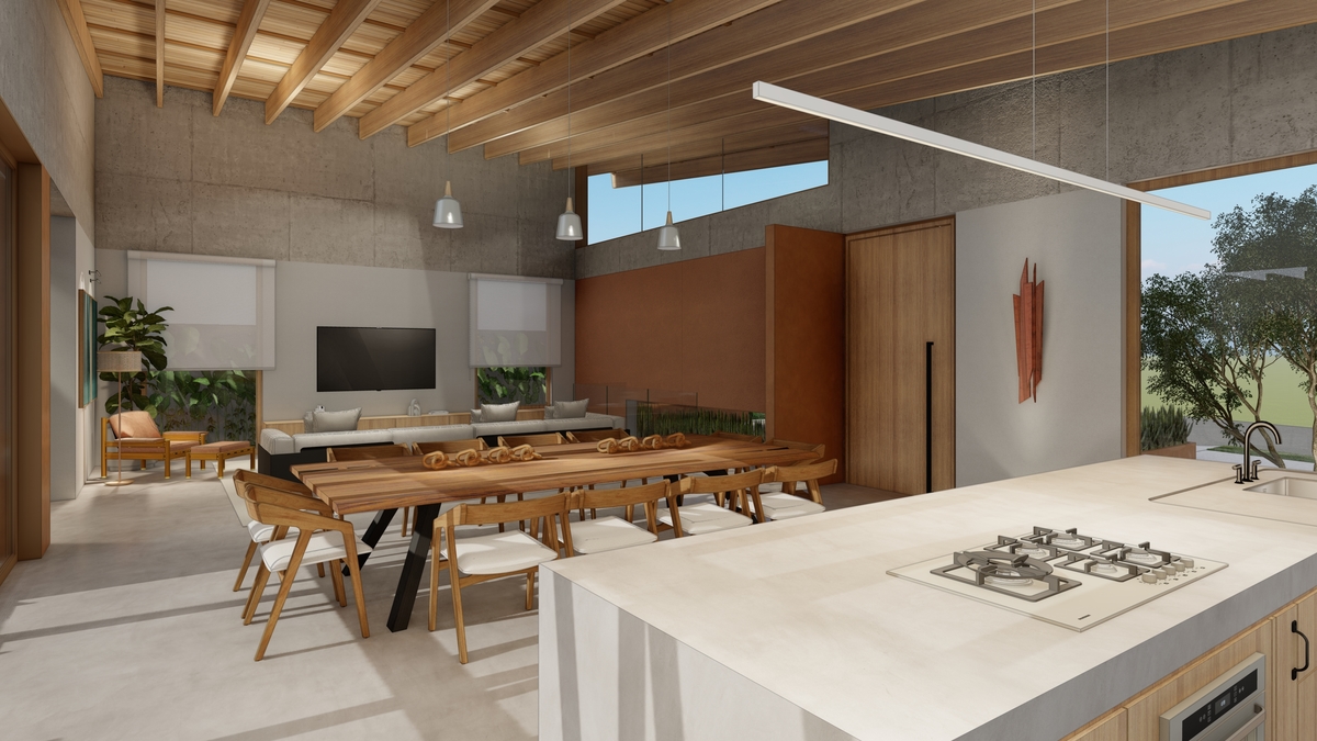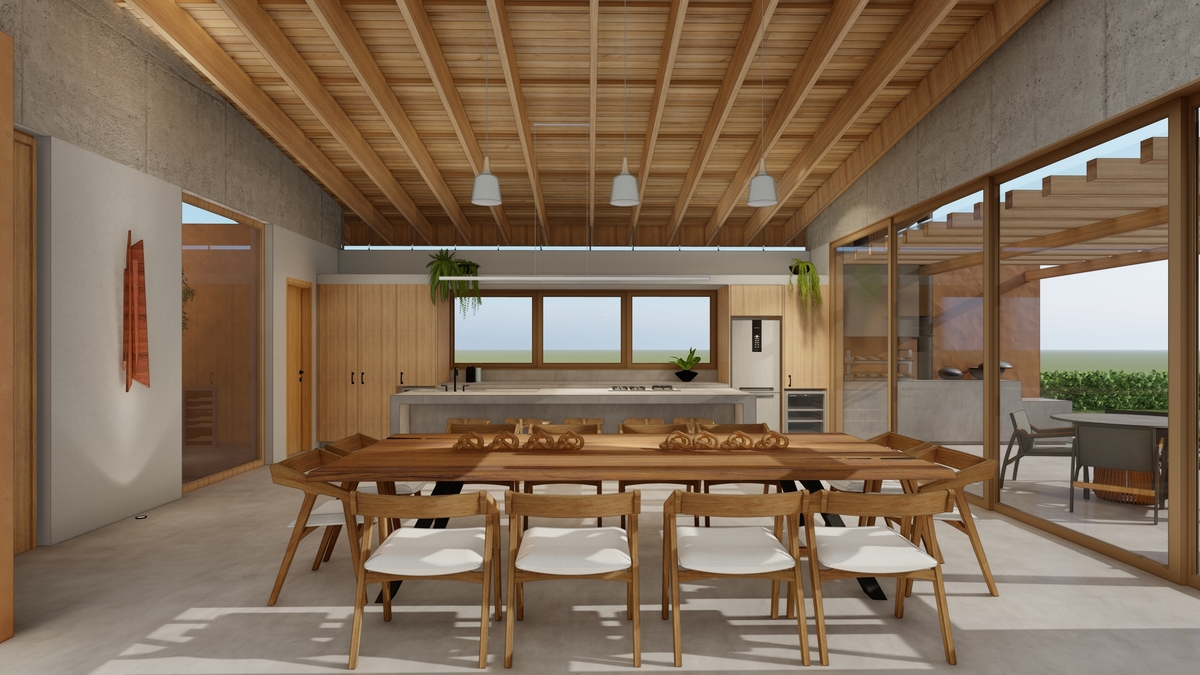 a implantação da Casa R | J nasce a partir das reuniões familiares e da vista para uma árvore pau-ferro de mais de 6 metros de altura, presente no terreno.